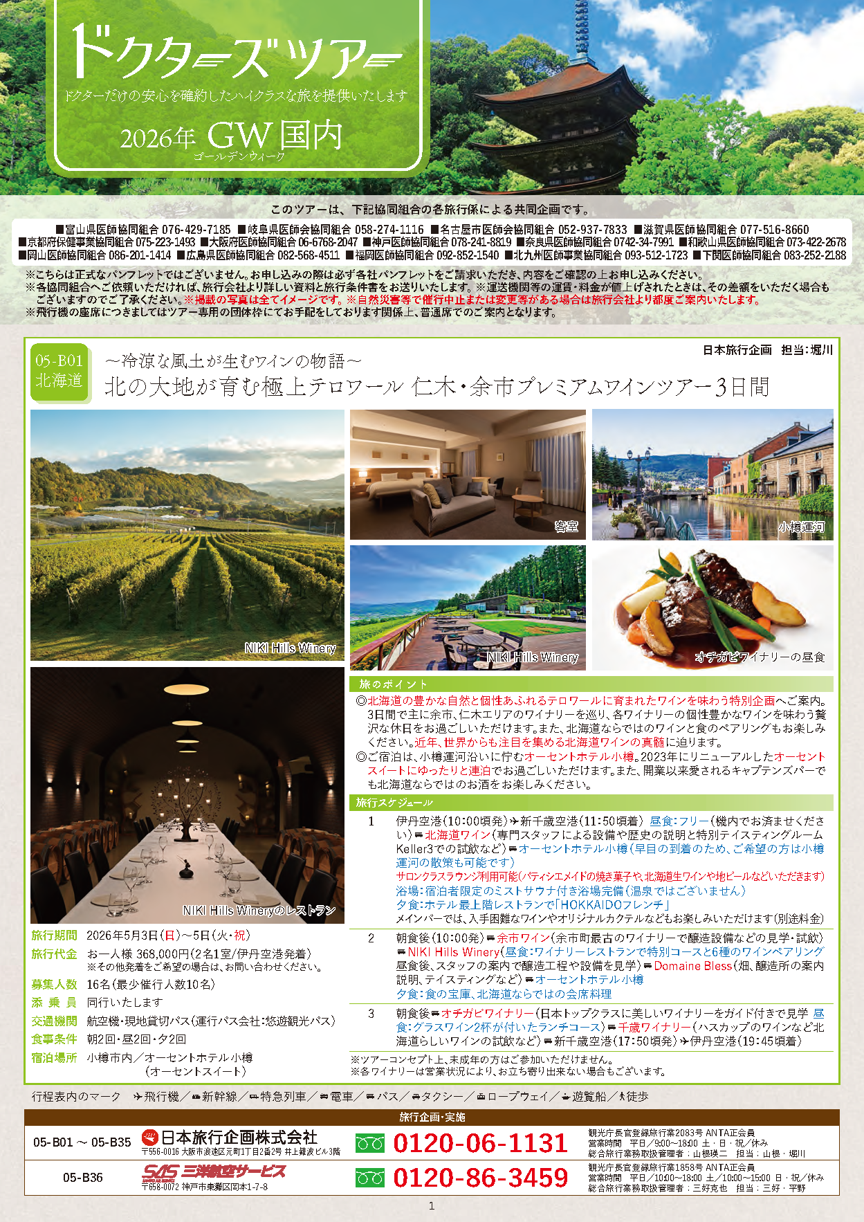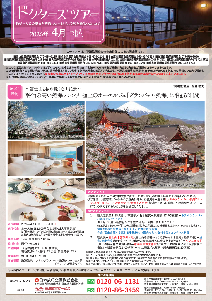 提携旅行会社:日本旅行企画㈱・㈱三洋航空サービス・名鉄観光サービス㈱・神戸新聞旅行社