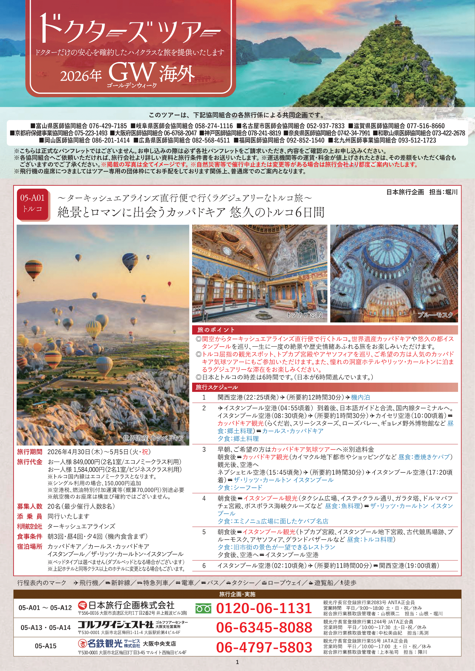 ドクターズツアー以外のご旅行のお申込も受け付けています。