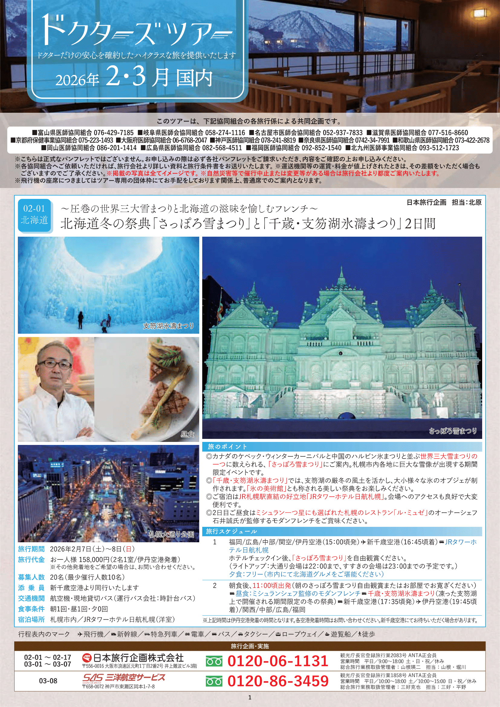 提携旅行会社:日本旅行企画㈱・㈱三洋航空サービス・名鉄観光サービス㈱・神戸新聞旅行社